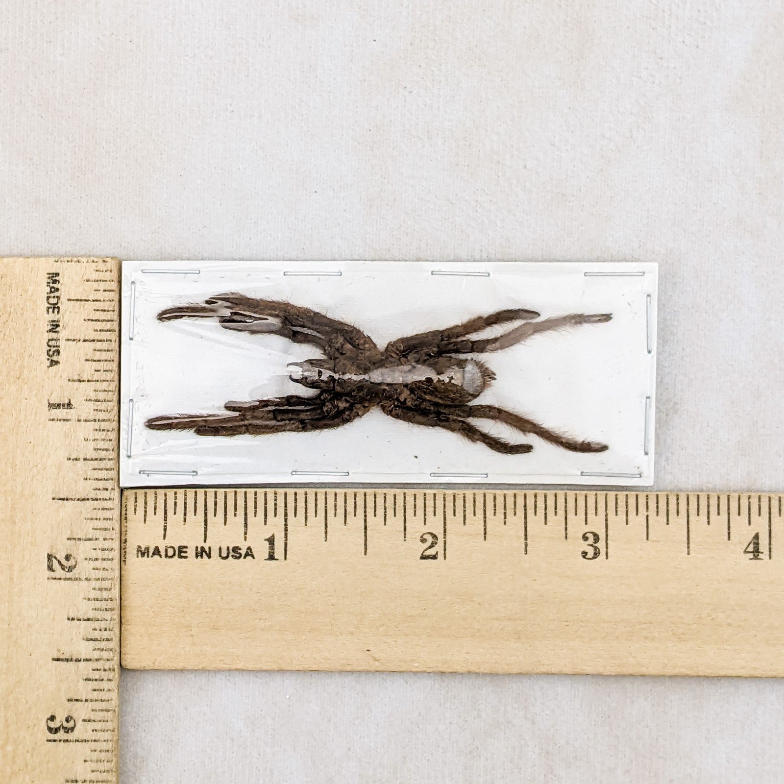 This is a very nice and attractive Tarantula! This would make a nice addition to any collection as well as a great teaching tool! You will love him! approx. 3 x 1 1/4", last picture shows this specimen with a ruler.