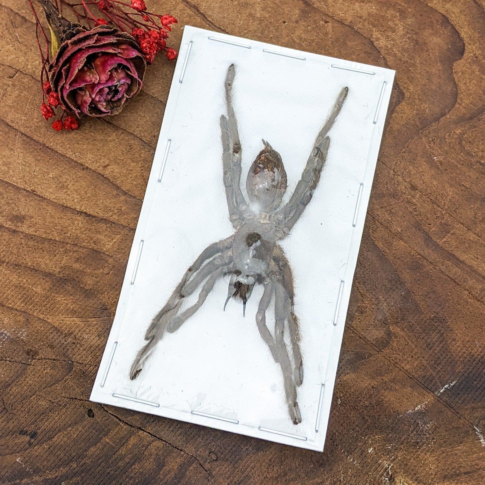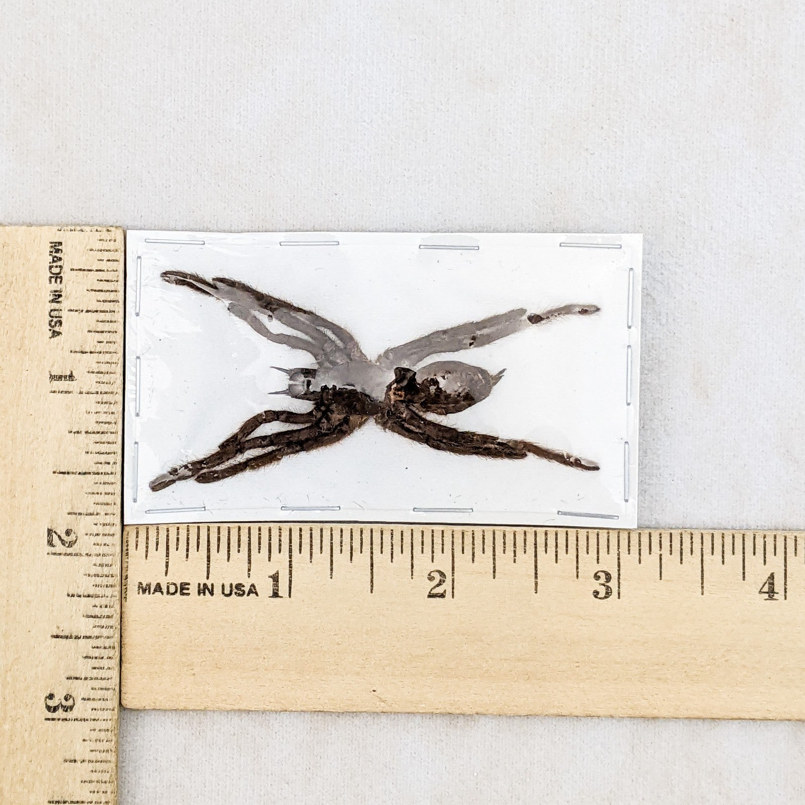 This is a very nice and attractive Tarantula! This would make a nice addition to any collection as well as a great teaching tool! You will love him! approx. 3 x 1 1/2", last picture shows this specimen with a ruler.