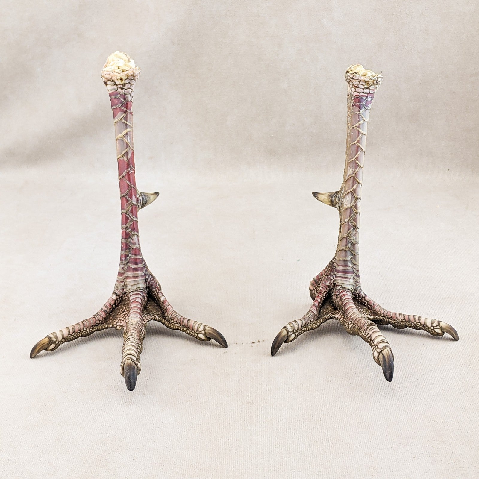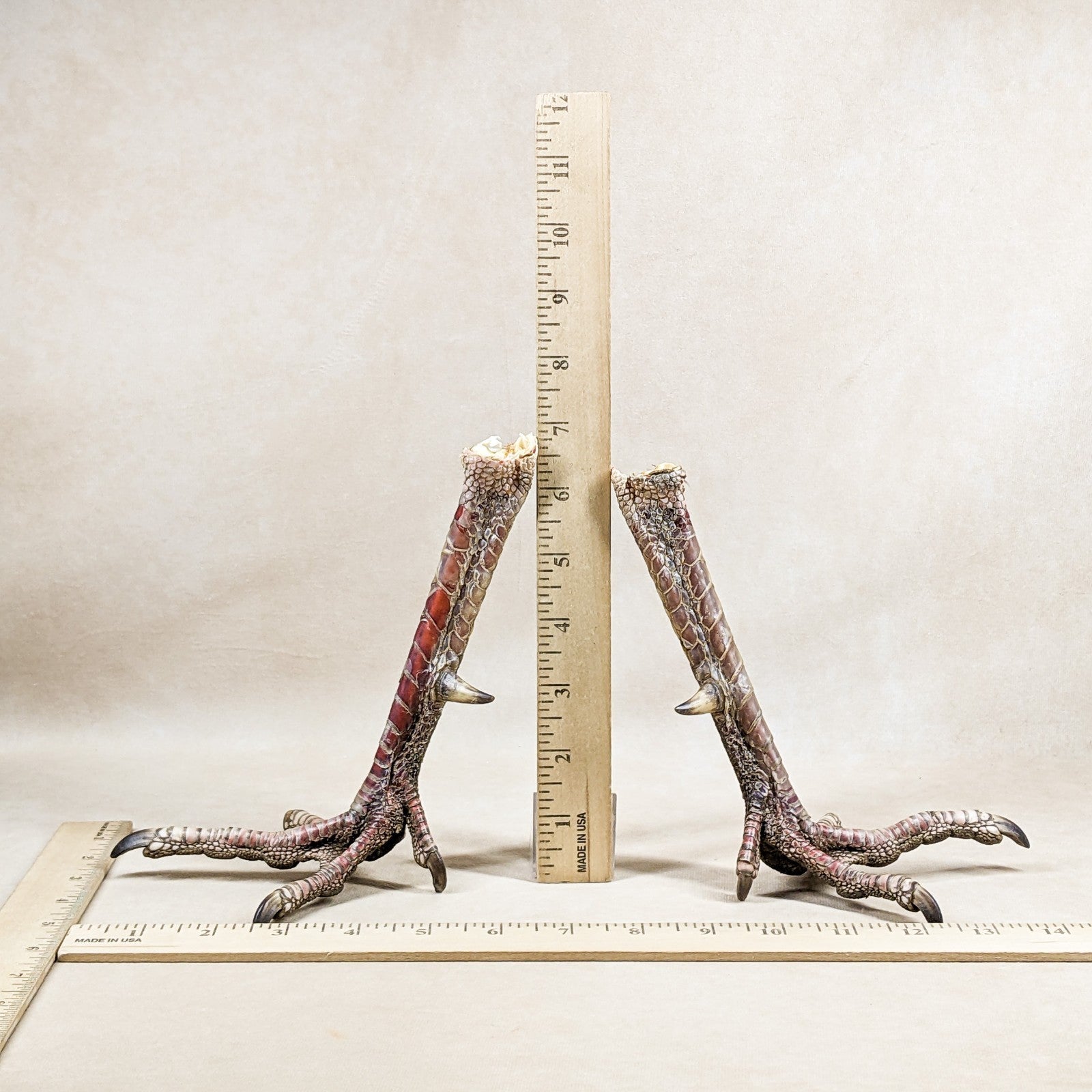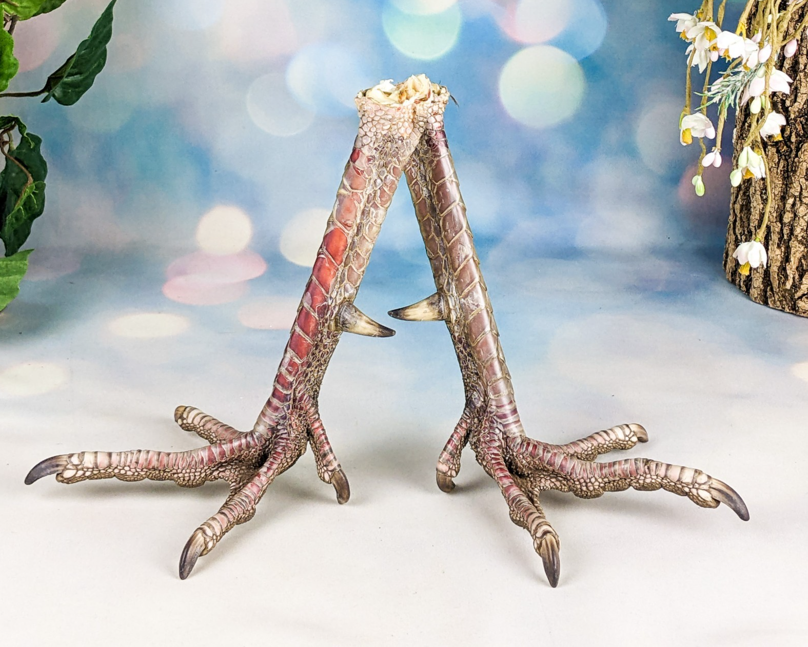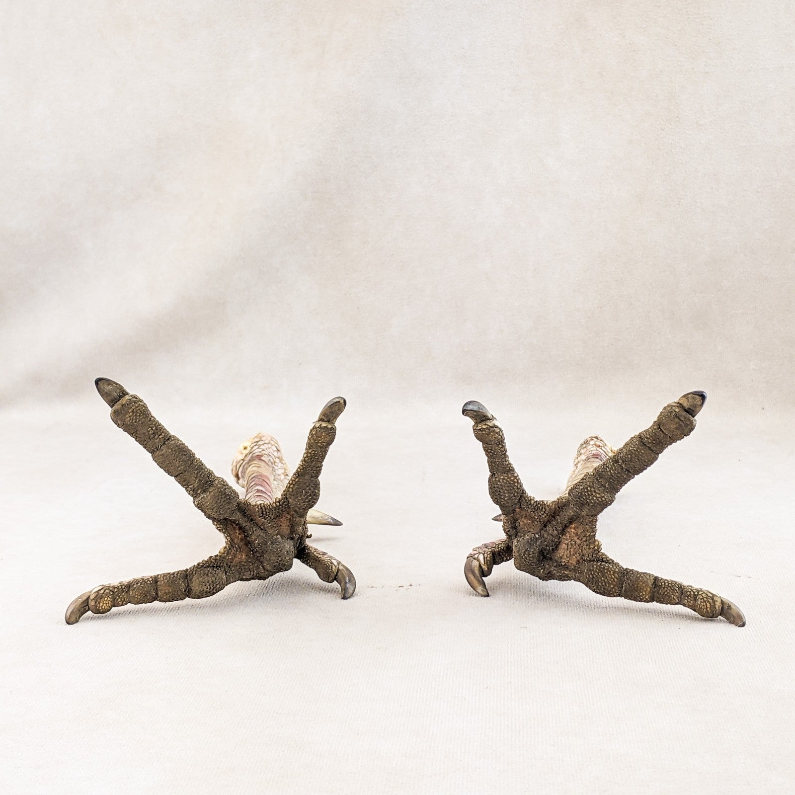 U37d #8 Matching spurred pair (1") of spread preserved turkey legs for crafts, taxidermy, spells, education, collection, display, Dog training/treats or whatever you would like to use them for. They are approx. 9 1/2 tall overall 8" leaning x 5 1/4 x 5" and 1 to 1" spurs.