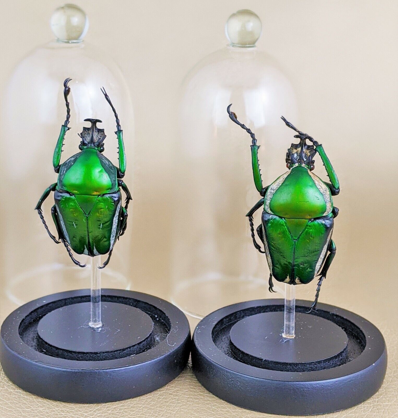 All displays will be carefully packed to the best of our ability to insure a safe and damage free arrival. If free First class shipping is offered and chosen it does not include insurance. If you want your item insured in case of damage in shipping please choose Priority Mail, that includes $100. worth of insurance. Returns are excepted, please contact us ASAP if you would like to return the item. Return shipping to be paid by buyer. Once the item is returned a refund will be issued minus a $10. restocking fee on each of these items ordered. There are no refunds on shipping charges. Before purchasing this item you must agree to the following: No claims for small broken parts such as antennae, detached tails, leg, head or broken tarsi. These small parts are easily fixable and you should be aware that you may have to fix (glue) a part or two when purchasing items like this. If there is a major problem I will take care of the matter. These are all natural specimens and may have a leg or part of an antenna missing, I do my best to make sure they are very good but sometimes one gets by me, any damage is very slight and will not effect the looks of the specimen. See my feedback for confirmation. I rarely have a problem but even with good packaging it is impossible for us to Guarantee that specimens will arrive totally intact. If you pay for Priority mail your items will be covered by postal insurance which will cover any damage in shipping-First class does not cover damage as it is not insured.