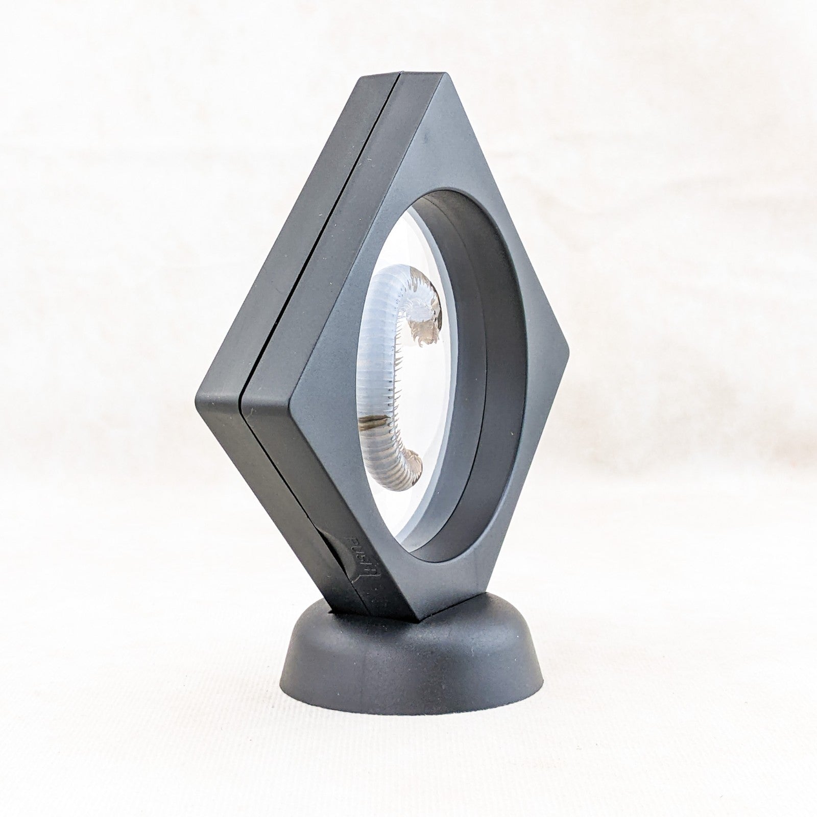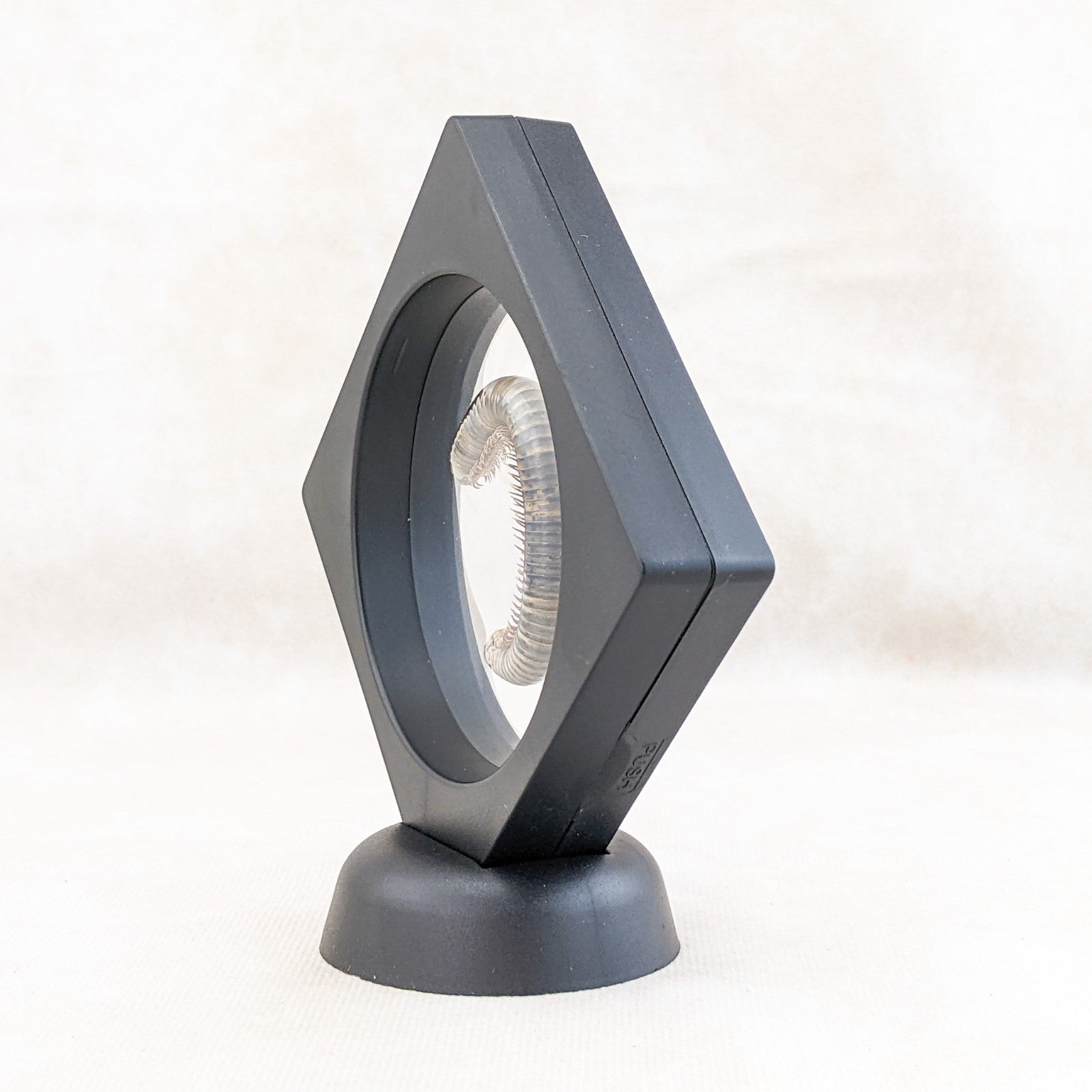 This is nicely showcased in a shadowbox type frame that suspends him in a clear elasticity film so both sides may be viewed unobstructed and also gives the specimen the illusion of "floating"! This can be opened but I advise against it as the specimens or the elasticity strip usually are damaged when you open the display. If the film in your display starts to stick together or gets some bubbles in it you can open the case very slowly so the film releases from both side and close again very slowly and the problem should be resolved. If the film gets touched or is in a hot area this can happen but it is a very easy fix also sometimes in shipping the specimen can shift a little in the display. If this happens please contact us and we will direct you on a quick and easy fix. Once the display has been opened returns are no longer accepted.