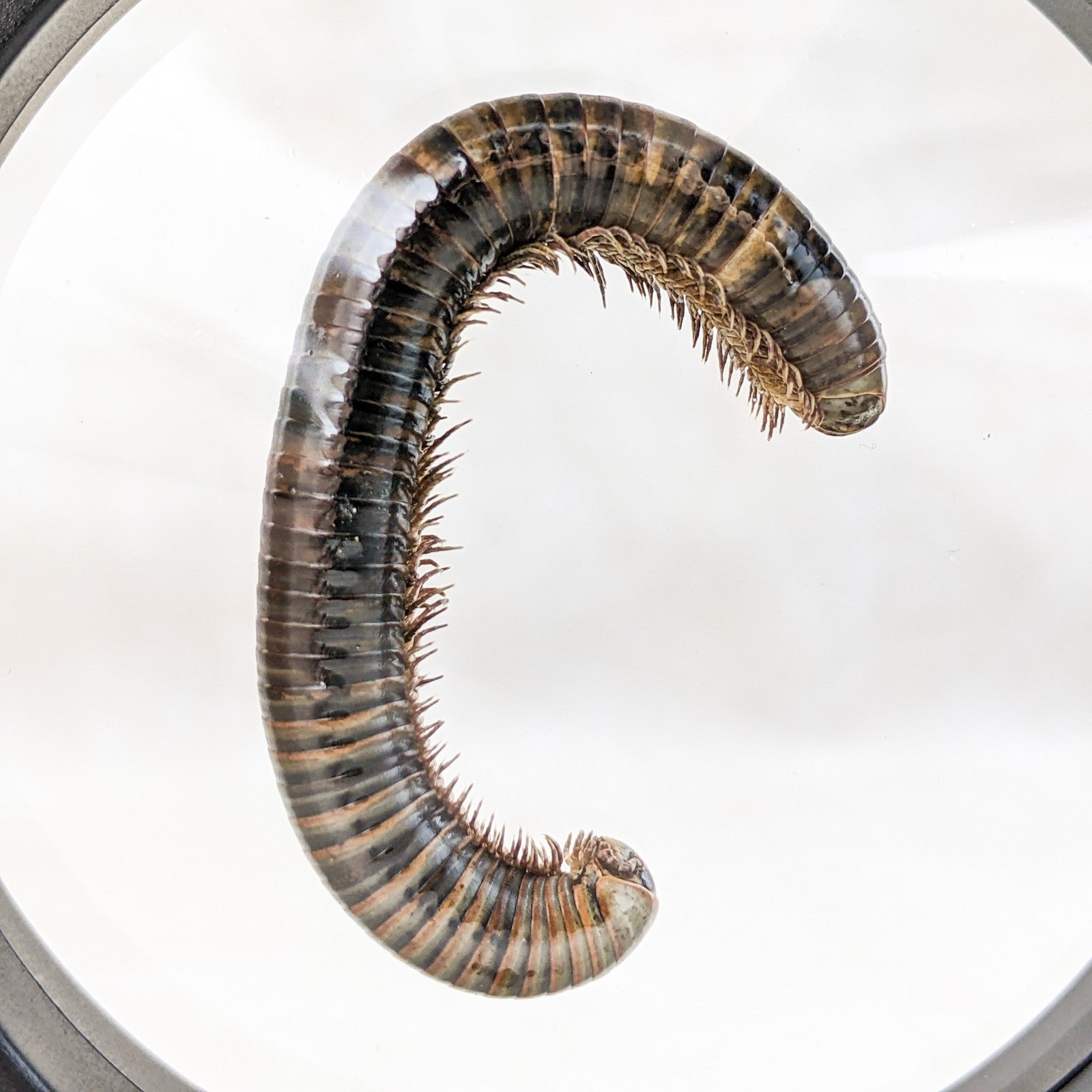 Julida is an order of millipedes. Members are mostly small and cylindrical, typically ranging from 10–120 millimetres in length. Eyes may be present or absent, and in mature males of many species, the first pair of legs is modified into hook-like structures.