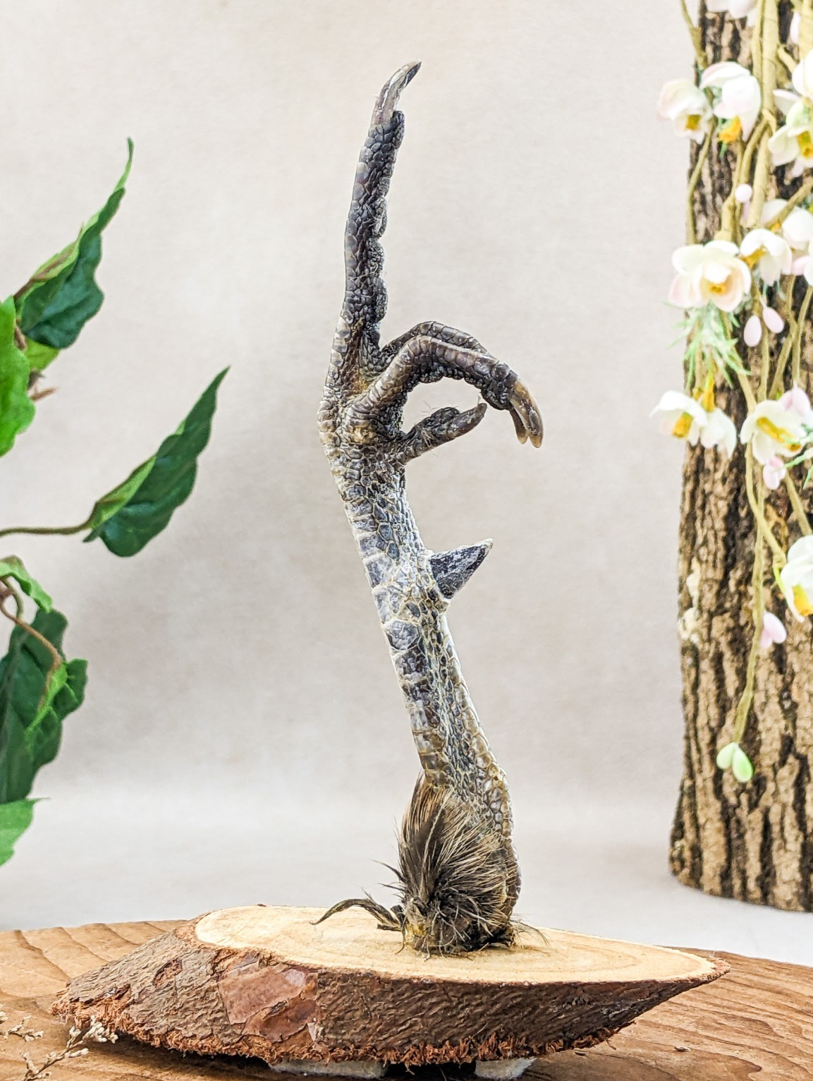 U38c #4 Literally a bird "flipping the bird". This is a preserved Pheasant leg "giving the finger" that is nicely mounted on a piece of wood. Tell someone what you really think in style! The display is approx. 7" x 2" x 4 3/4." See last picture for size. Nice addition for your collection or a great gag gift! There are several different styles of these available so check them all out in my listings!
