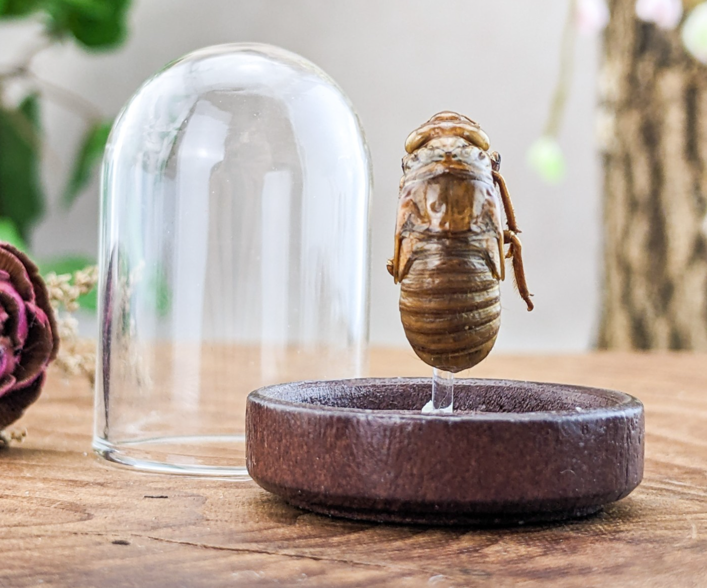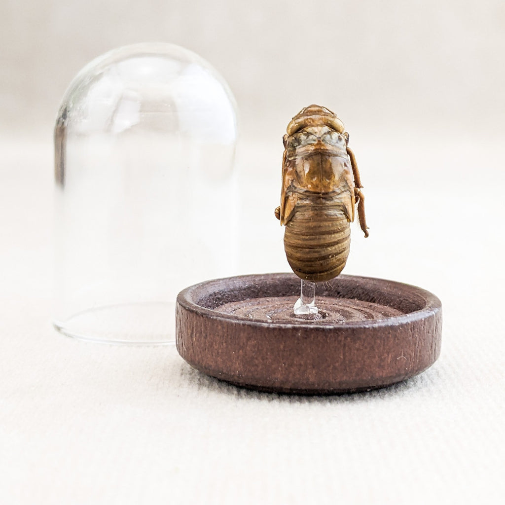 p58e #4 These are hard to find! This is a Cicada Nymph Grub showcased in a glass dome display. Nice specimen for your collection. This is approx. 1 1/2 x 1 1/8". You will receive the one pictured above, see last picture for size.