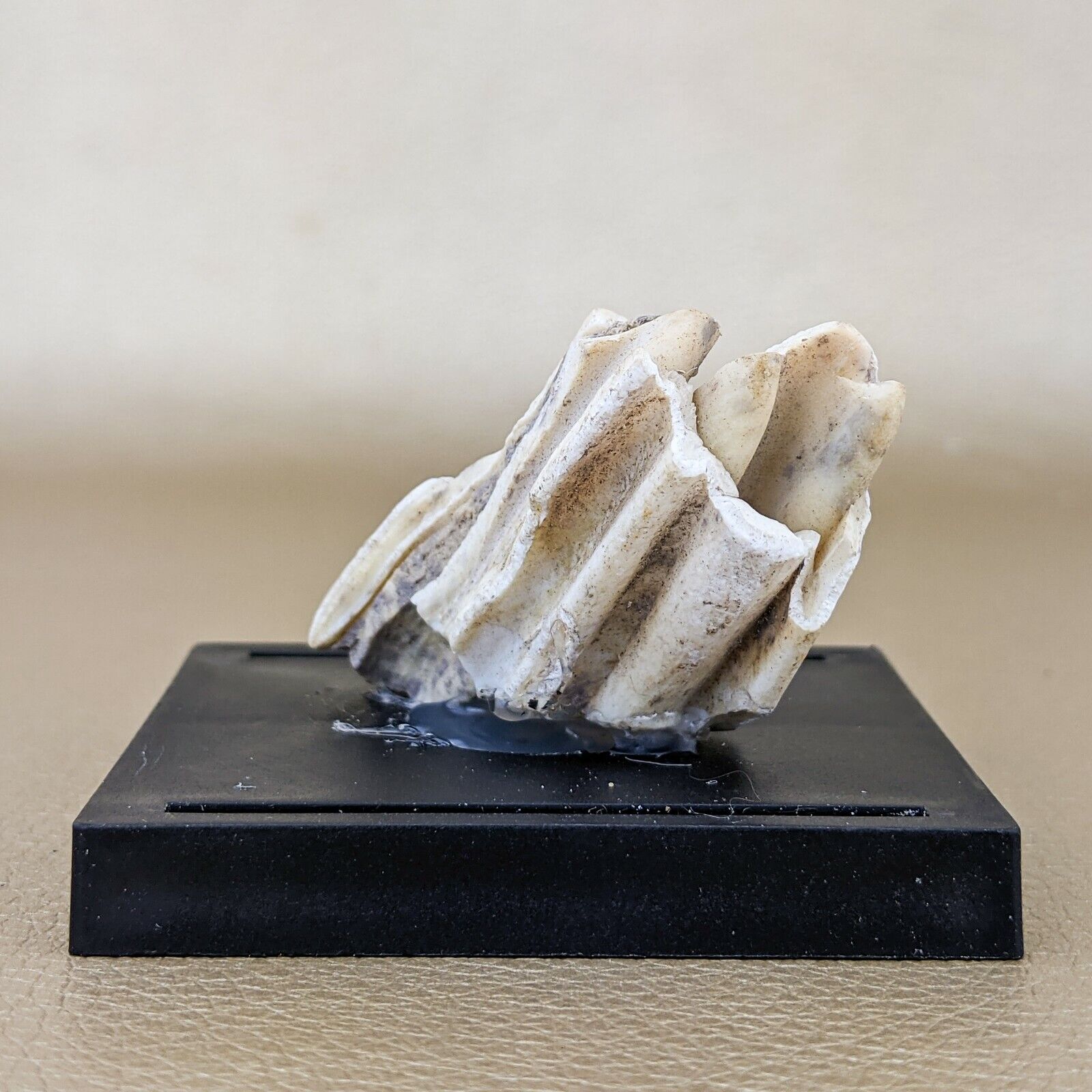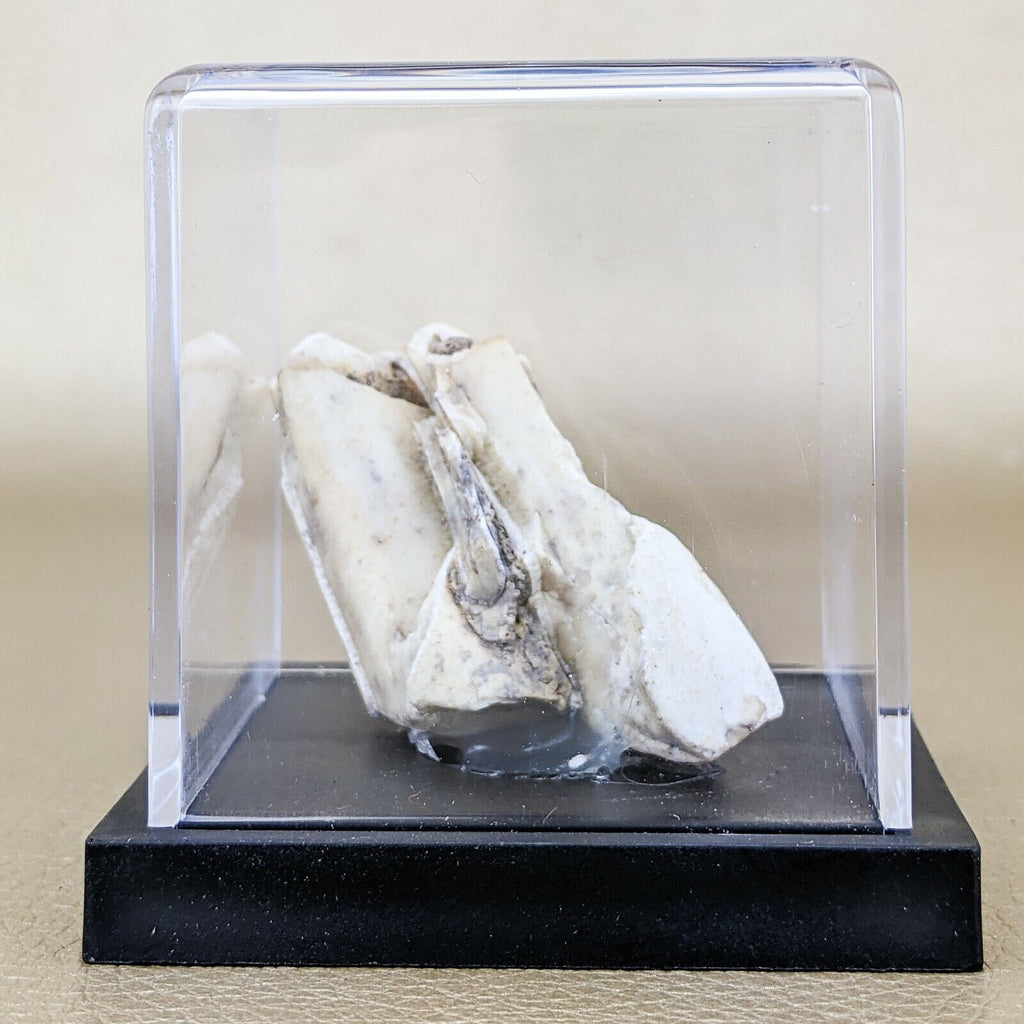 i32d  #     This display of a Bison Tooth fossil is nicely showcased in an acrylic see through case that does open so the display may be examined.  This display is apprx. 2 x 2" and is a great gift for a child or a wonderful educational tool.  This was from a dig in a subtropical area.
