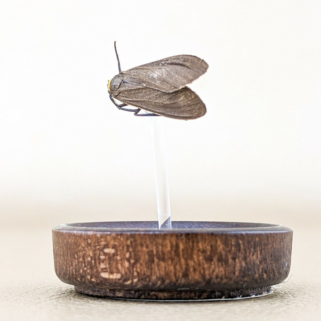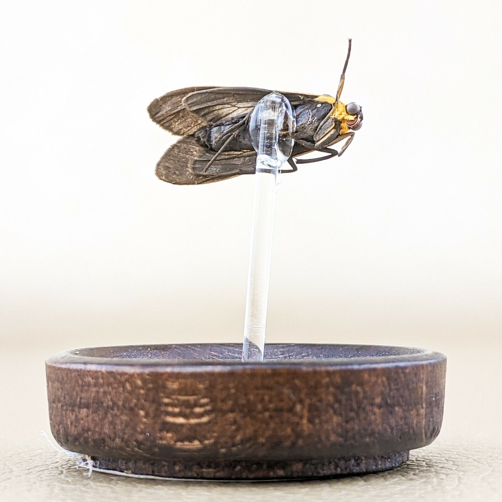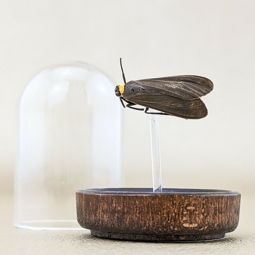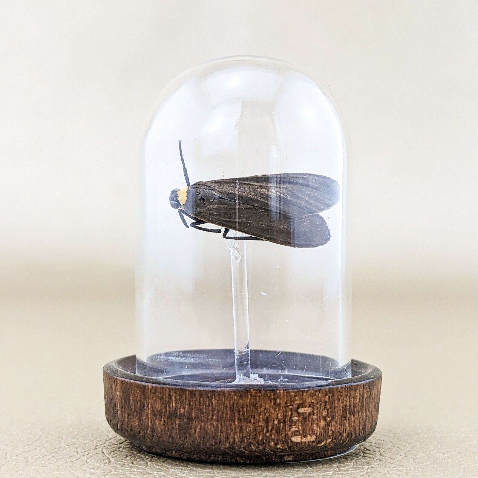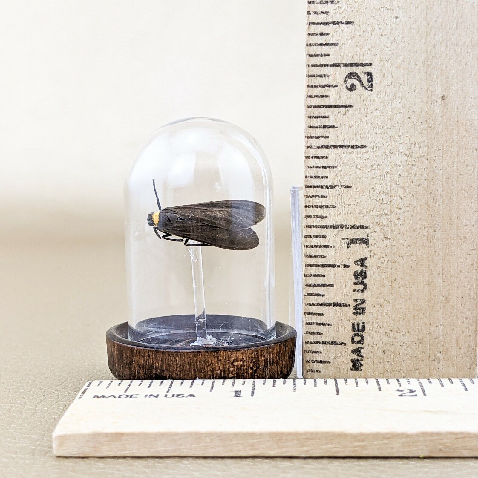 n1 #4 This Grapeleaf Skeletonizer moth is nicely displayed in a glass dome with a wooden base. Your specimen will stay safe and clean for years to come! This is a great starter piece, addition to a collection or use for educational purposes! Very nice and affordable for all! The dome is approx. 2 x 1 1/4" with a glass dome and wood base. THE DOME IS NOT ATTACHED AND IS REMOVABLE, BE CAREFUL WHEN OPENING.