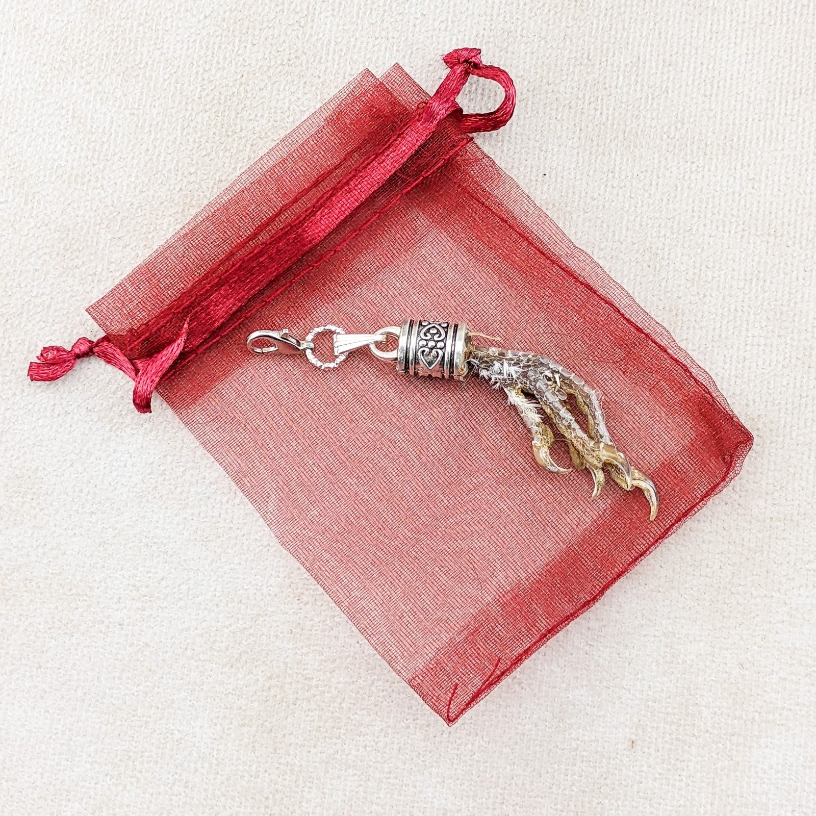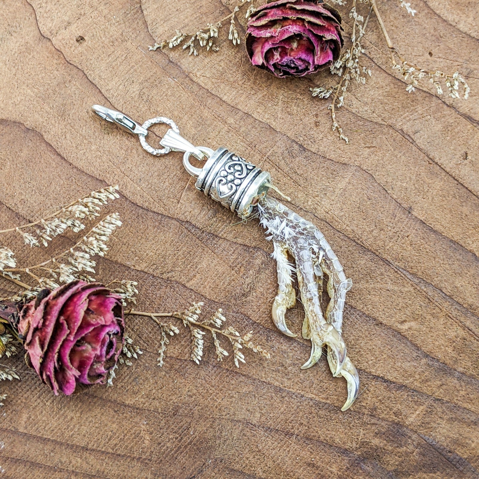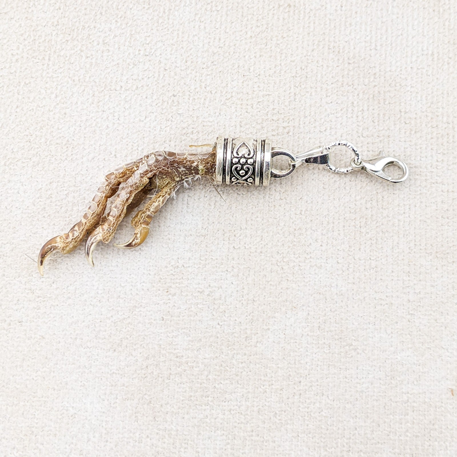 jw48  This is a Fancy capped Real Pigeon foot charm!  This hangs on lobster claw clasp.  It can be used on a necklace, bling, or as a charivari trophy or charm to be worn on Lederhosen: