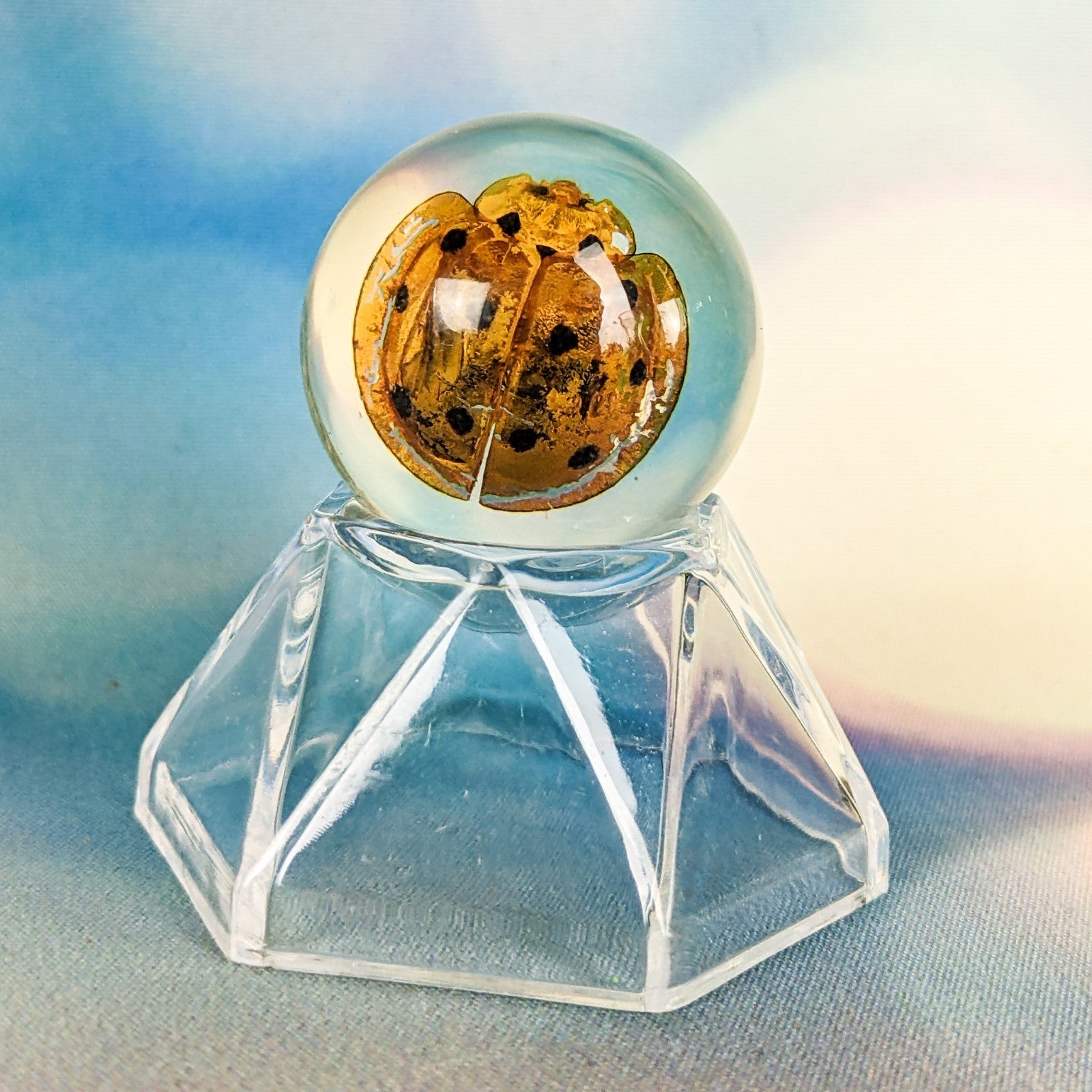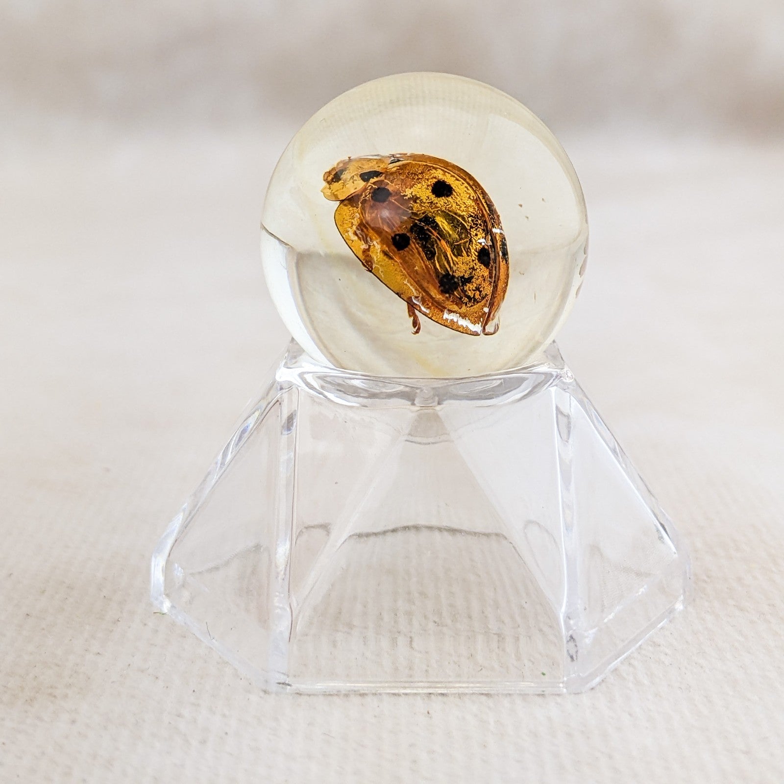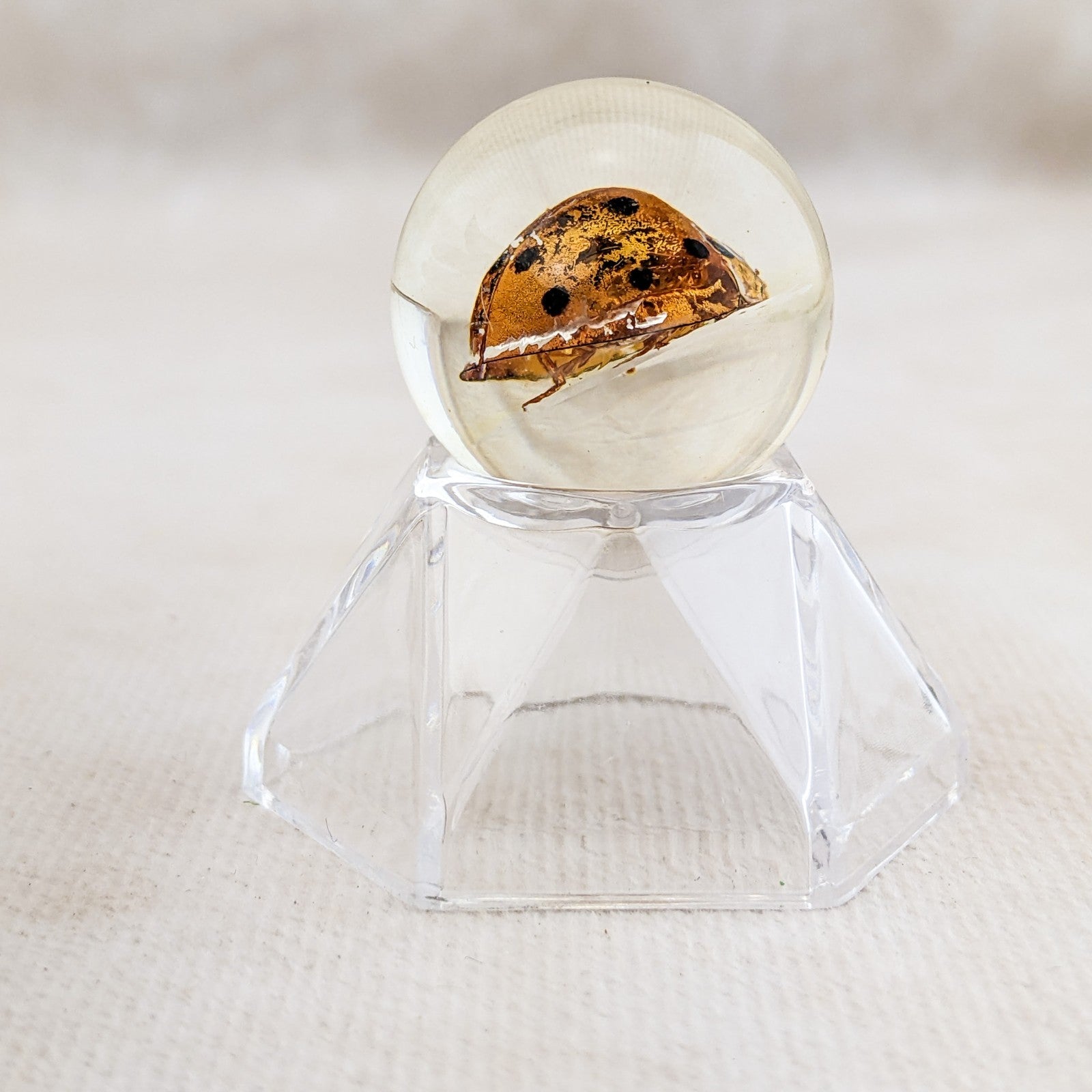 w58k #4 These little display are so nice! This is an Asian Ladybeetle Beetle display for your collection! The display is approx. 1 3/4 x 2". Resin marble with an acrylic stand to display him!