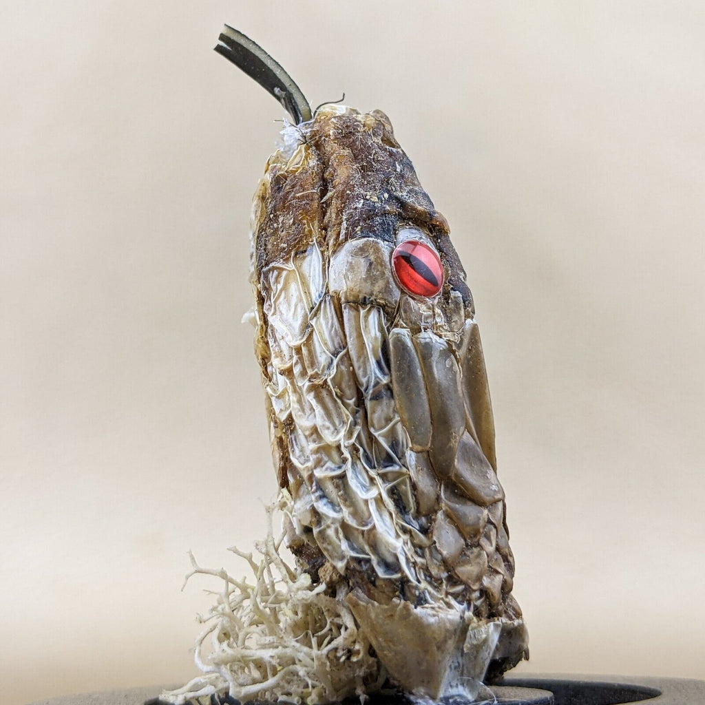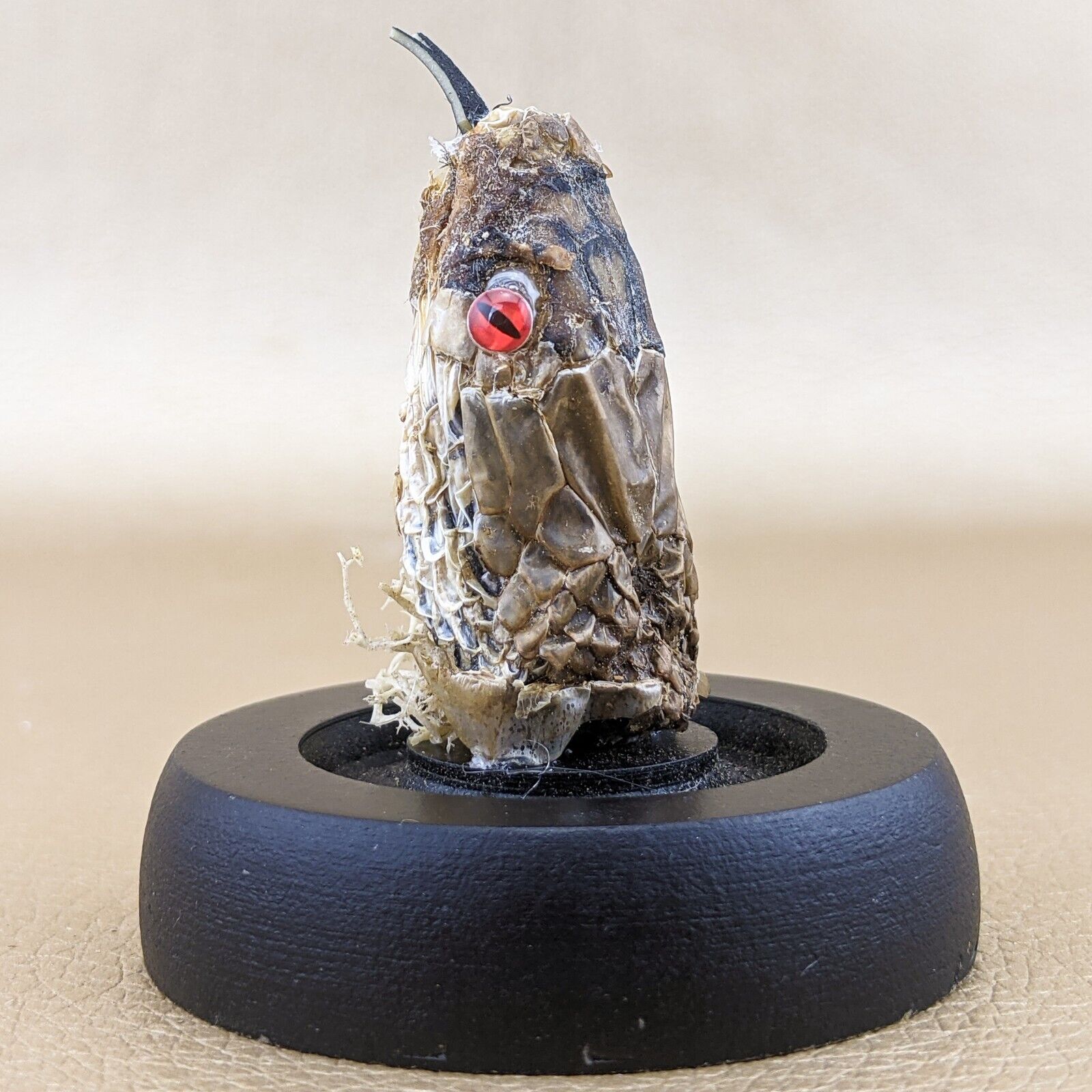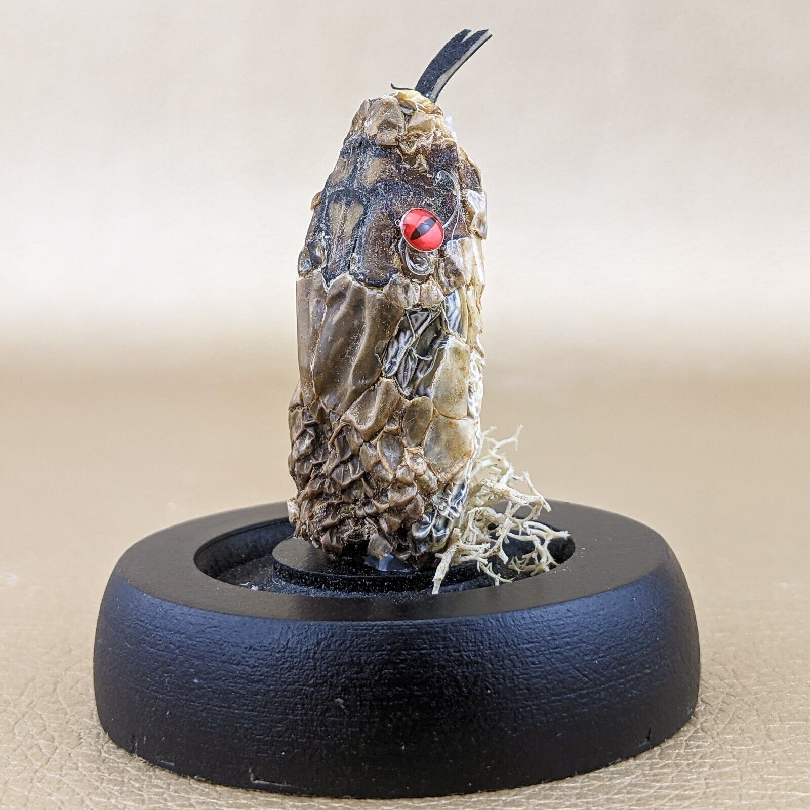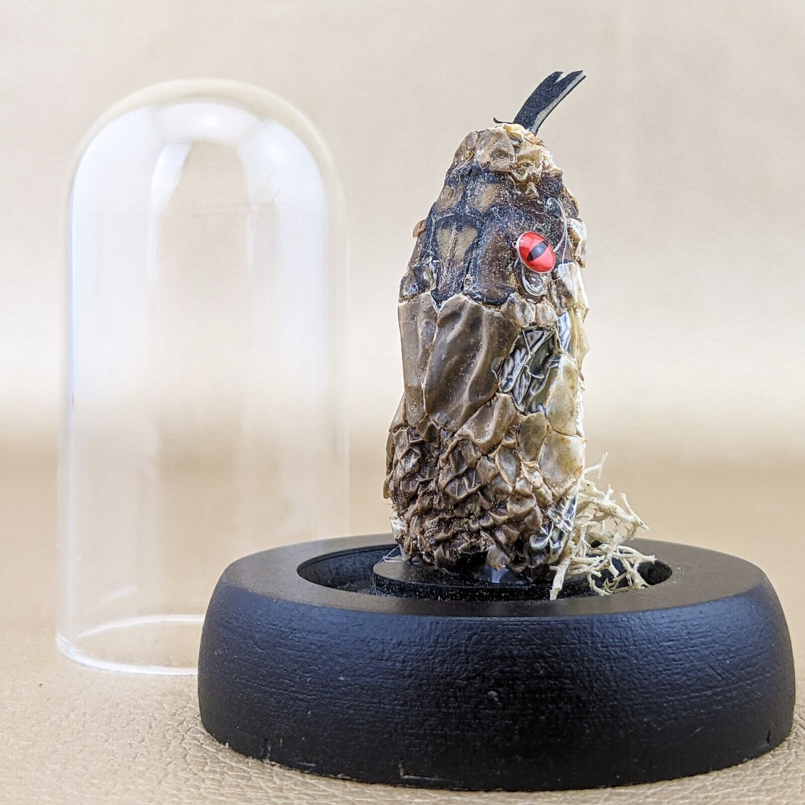 z38L #4    This is a nice display of a common Red banded snake head.  He is displayed in a glass dome display with a wood base.  This would be a great addition to any collection and sure to attract some attention!  We have added a faux forked tongue but the head is from real snake.   This is the specimen you will be receiving so please check out the pictures! This display is approx.  2 3/4 x 2".